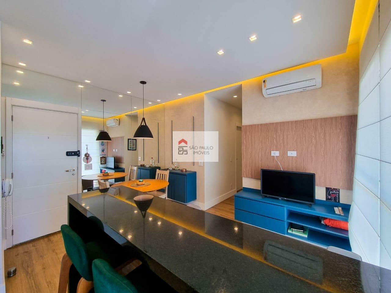 Apartamento muito bem decorado com 2 dormitórios, sendo 1 suíte, ar condicionado. Condomínio com piscina com raia de 25 m, academia, churrasqueira, playground, brinquedoteca, salão de festas. Excelente localização próximo ao Metrô estação Borba Gato.
